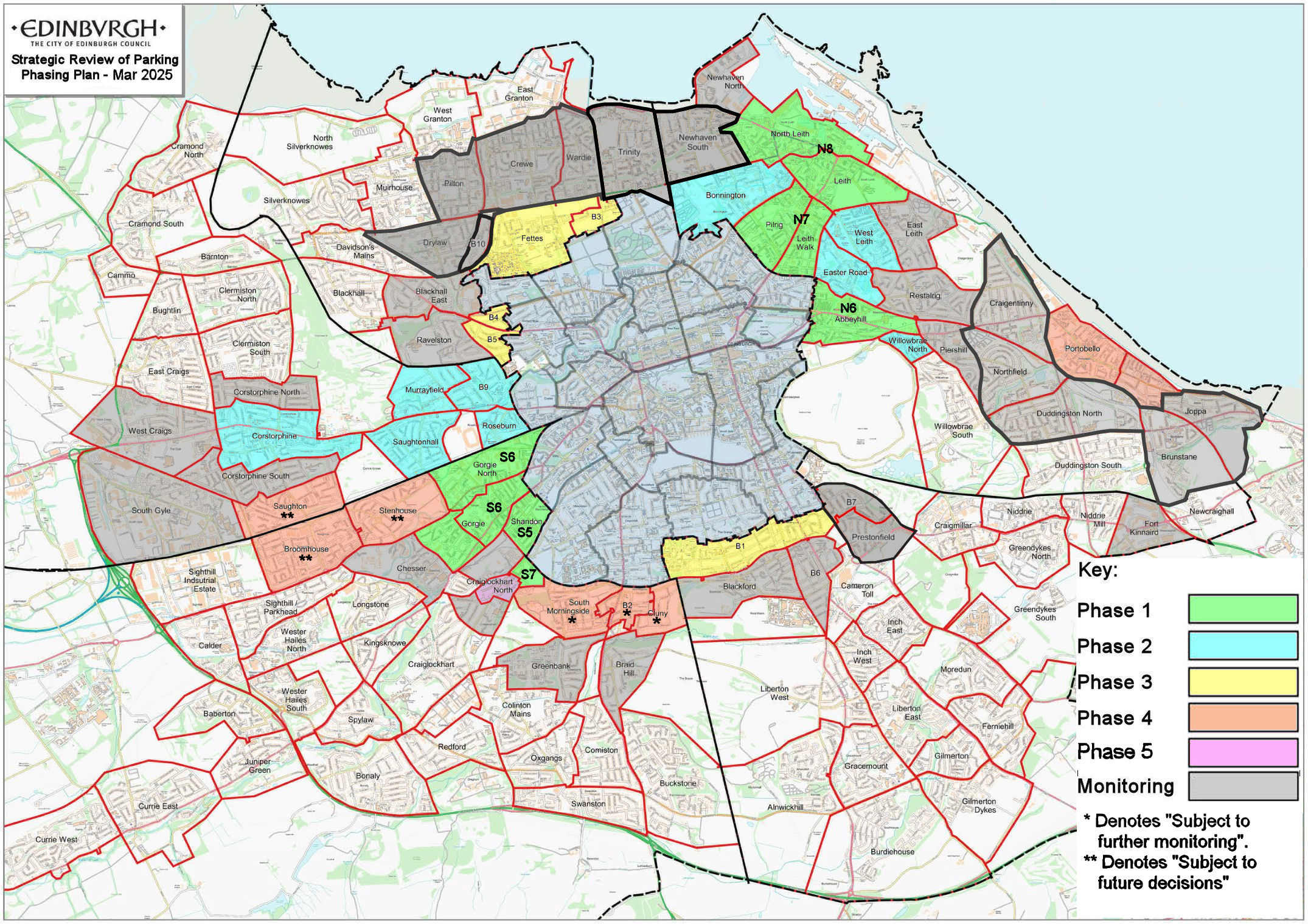 Implementation of the Controlled Parking Zone (CPZ) in Gorgie (S6) was managed over two phases to allow the Council to carry out additional monitoring in the western part of the zone. The remaining streets in the S6 area (which are not part of the CPZ) will be subject to ongoing monitoring.